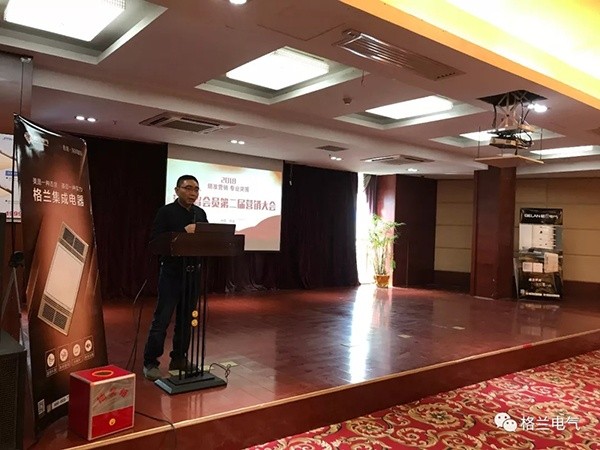 隨后,格蘭電氣營銷總經(jīng)理胡總上臺發(fā)言致辭。胡總回顧了格蘭電氣公司二十余年的發(fā)展史,介紹了各類產(chǎn)品系列、新品、營銷規(guī)劃等方面。此外,胡總也分析了電工電氣行業(yè)的大環(huán)境和市場的現(xiàn)狀,面臨原材料價(jià)格的飛速上漲,各項(xiàng)成本的大幅上升,公司也壓力倍增,市場銷售的任務(wù)愈加艱巨,面對這些市場壓力,胡總就公司2018年的營銷規(guī)劃和市場戰(zhàn)略調(diào)整也做了簡短的描述和傳遞,受到大家的一致認(rèn)可,同時(shí)胡總也表示,大家應(yīng)該團(tuán)結(jié)一心,共同努力,加強(qiáng)客戶的管理,提高市場的洞察和創(chuàng)新能力,為各個(gè)經(jīng)銷商提供更寬廣的平臺,從而促進(jìn)各合作伙伴的新一輪的快速增長。